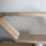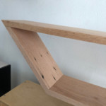 I was inspired to make these shelves after seeing a trapezoid shaped shelf that I liked. These are parallelograms, also part of the polygon family, and are made from reclaimed redwood and red oak.