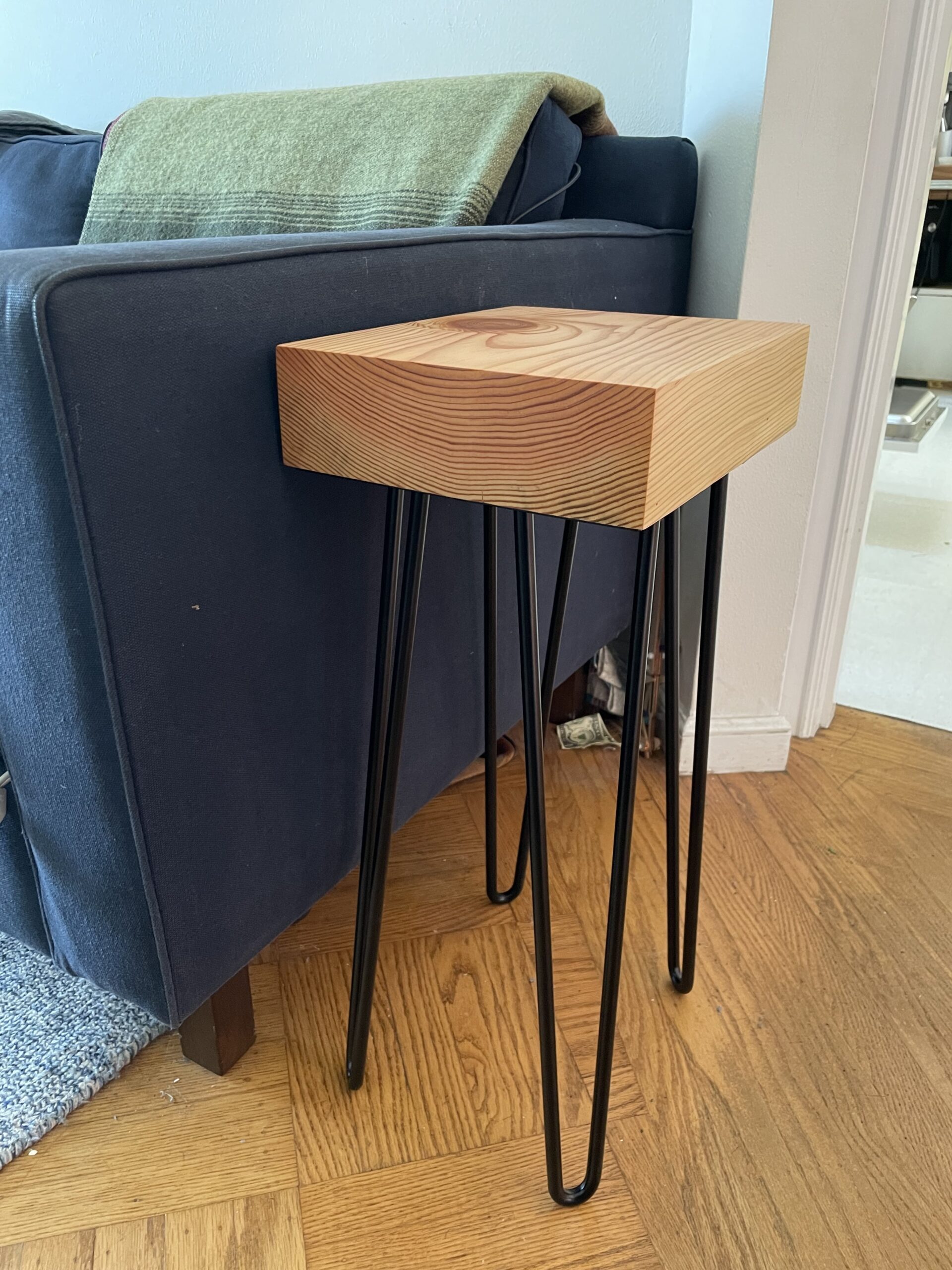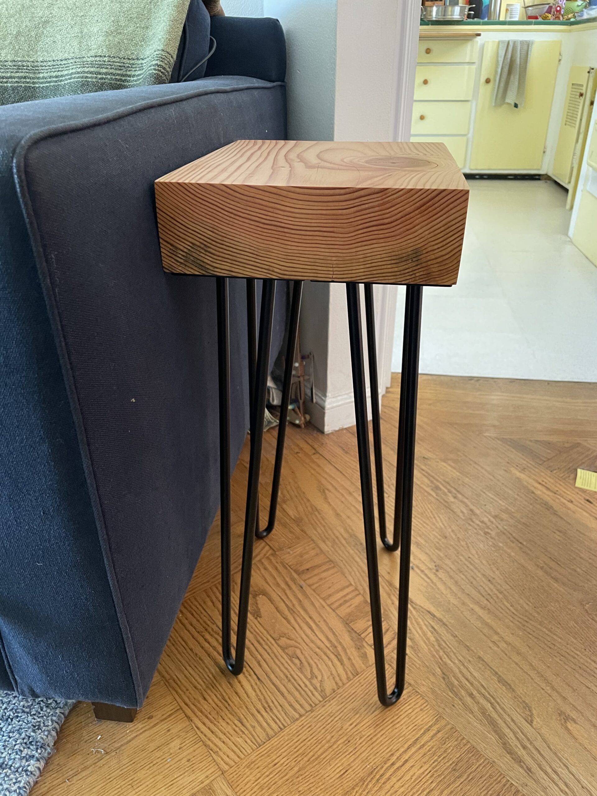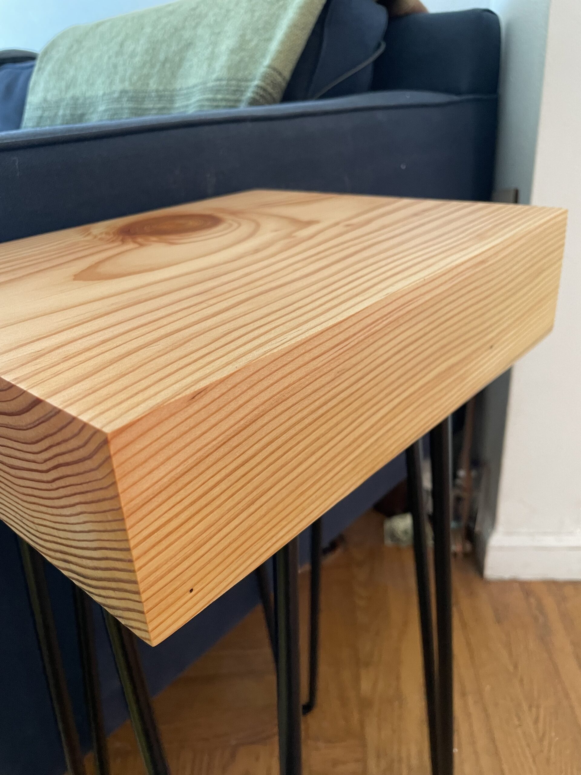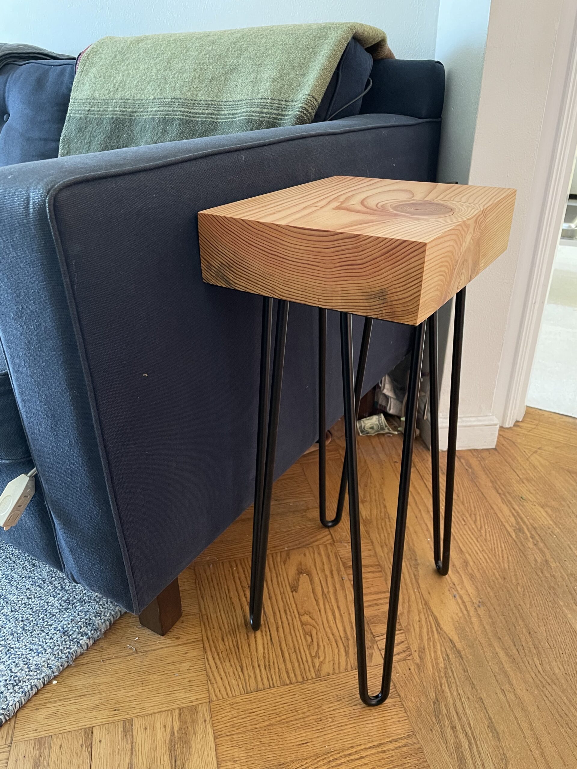 This table was made with a piece of reclaimed douglas fir. It has some interesting details in the wood, and is on steel hairpin legs. If you’d like to purchase this table, or have any questions, please contact me by clicking below.