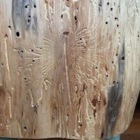 This stump has some nice details in the grain as well as some interesting patterns left by some long gone insects. It sits on four steel legs. If you’d like to purchase this table, or have any questions, please contact me by clicking below.