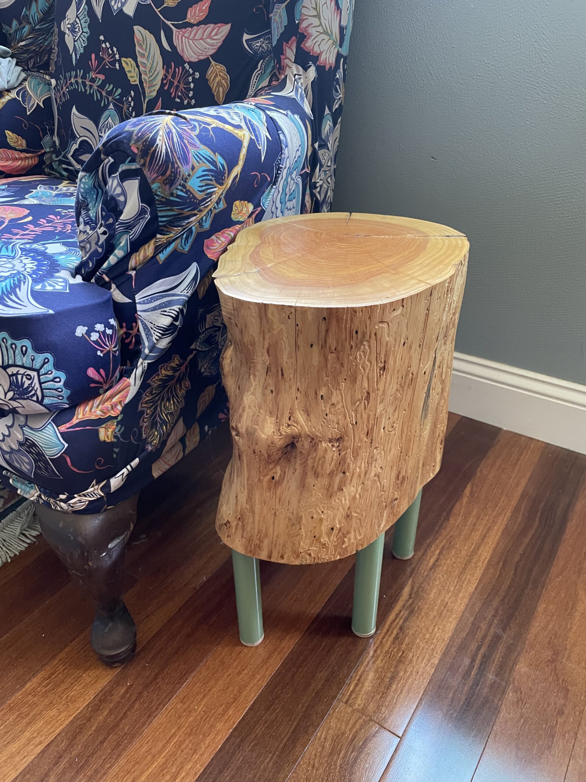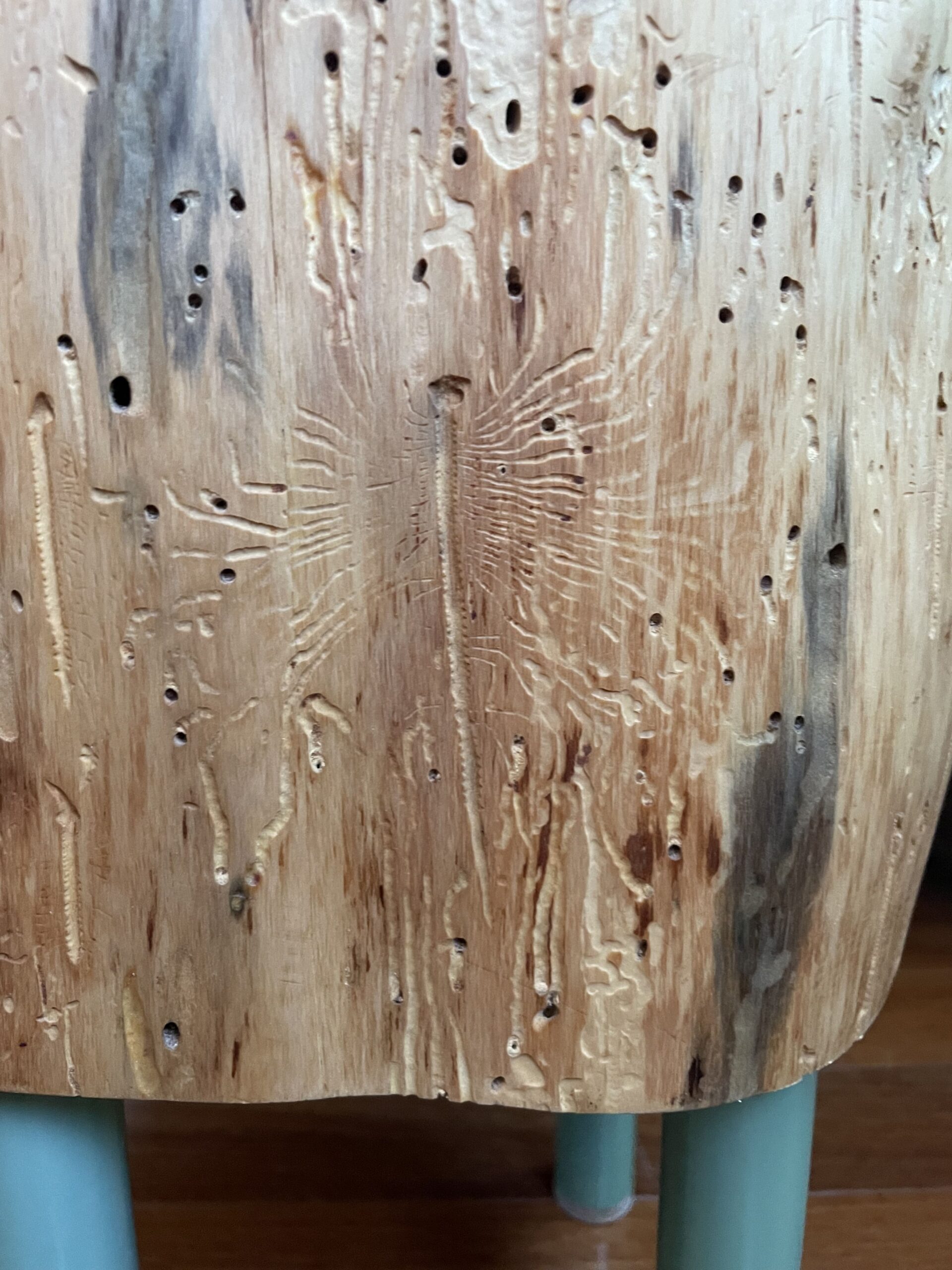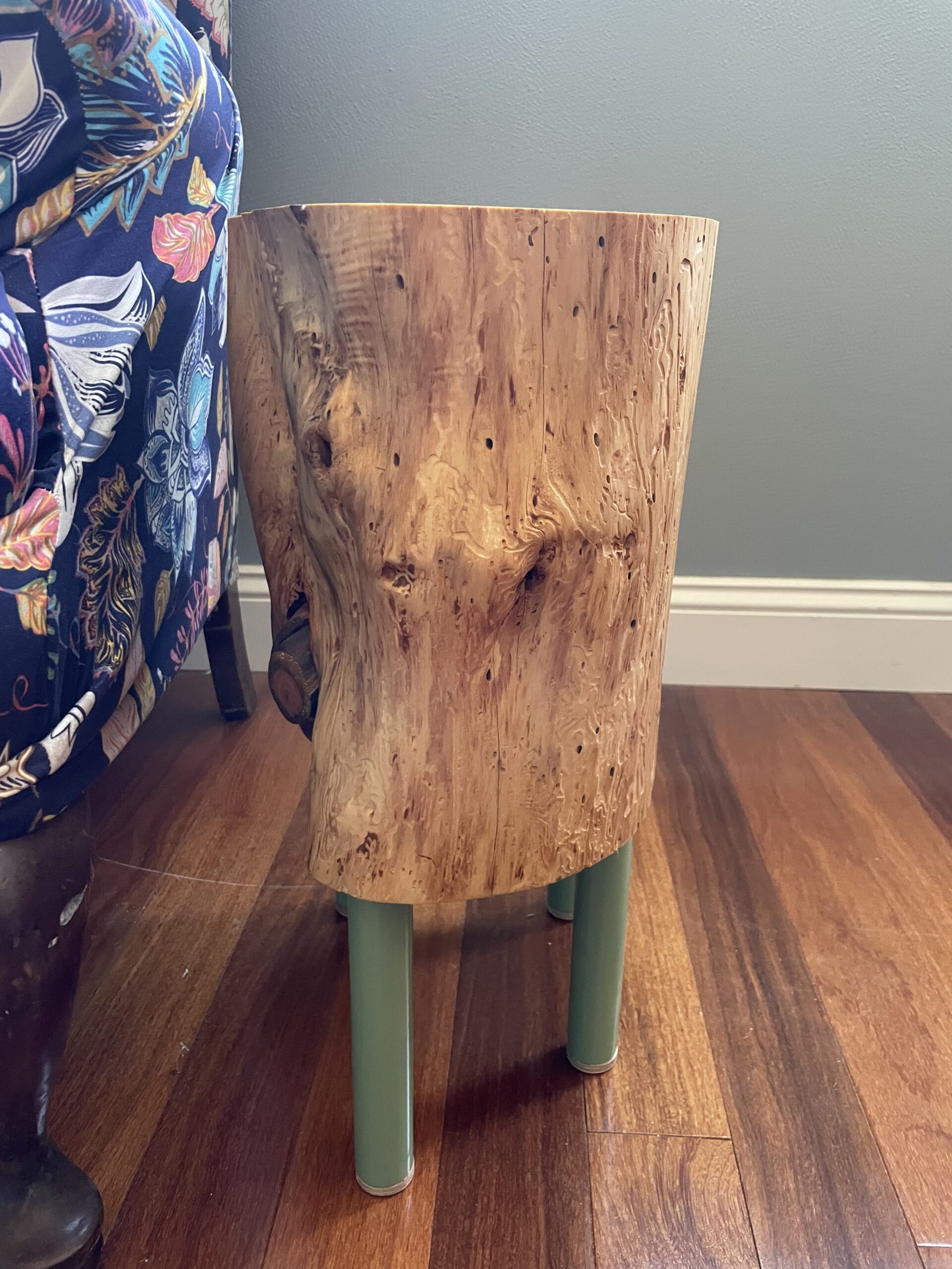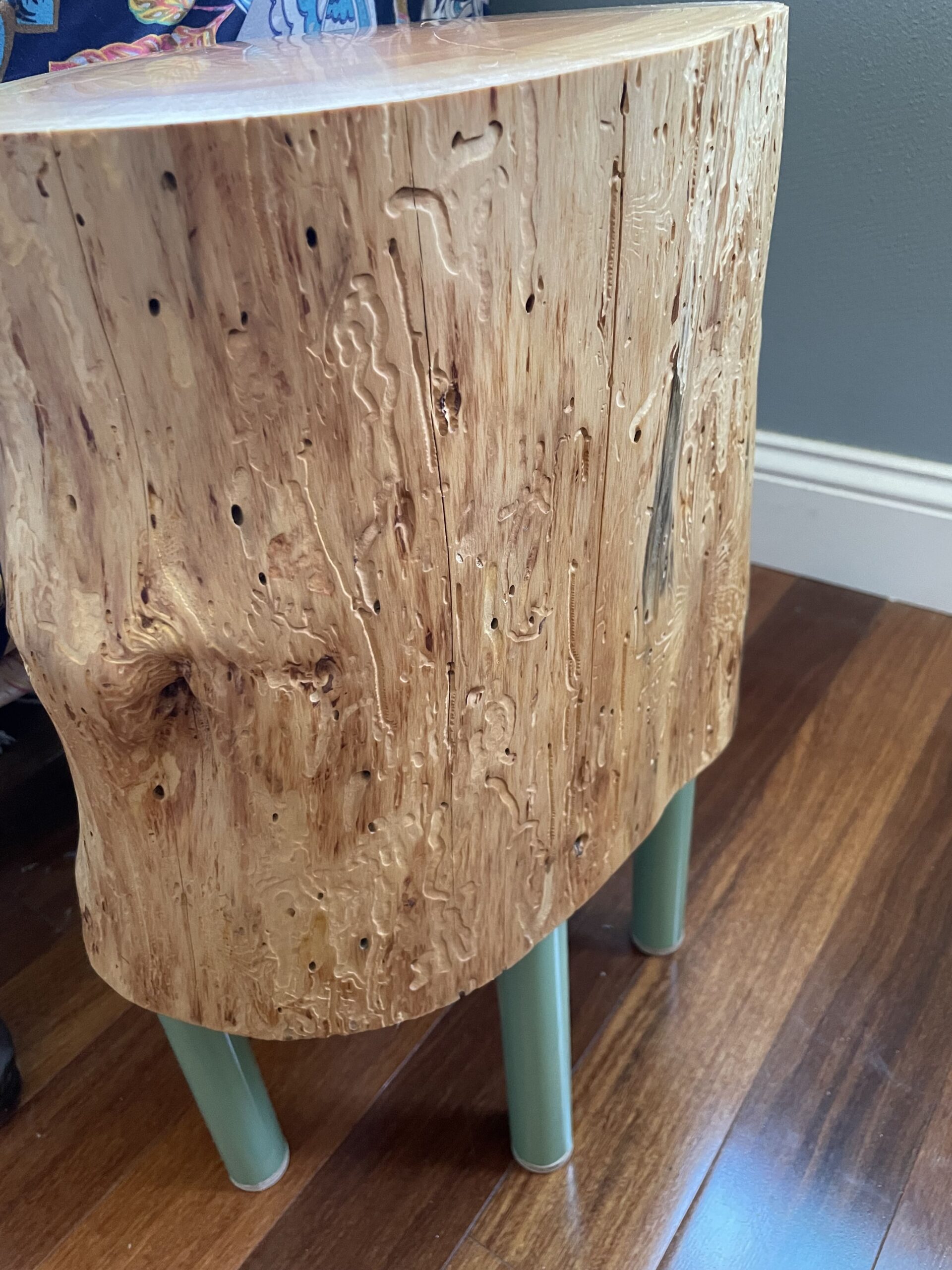 This stump has some nice details in the grain as well as some interesting patterns left by some long gone insects. It sits on four steel legs. If you’d like to purchase this table, or have any questions, please contact me by clicking below.