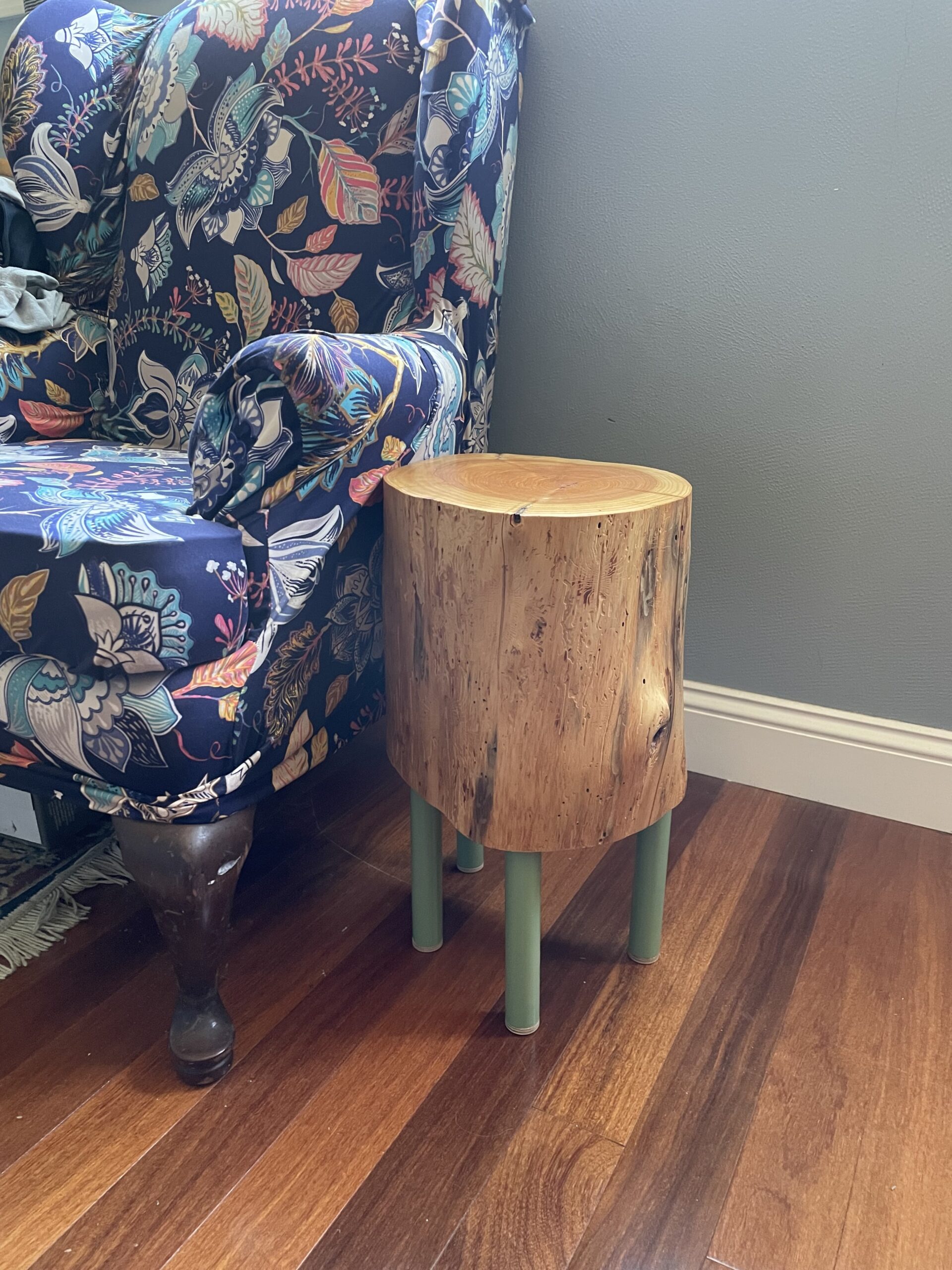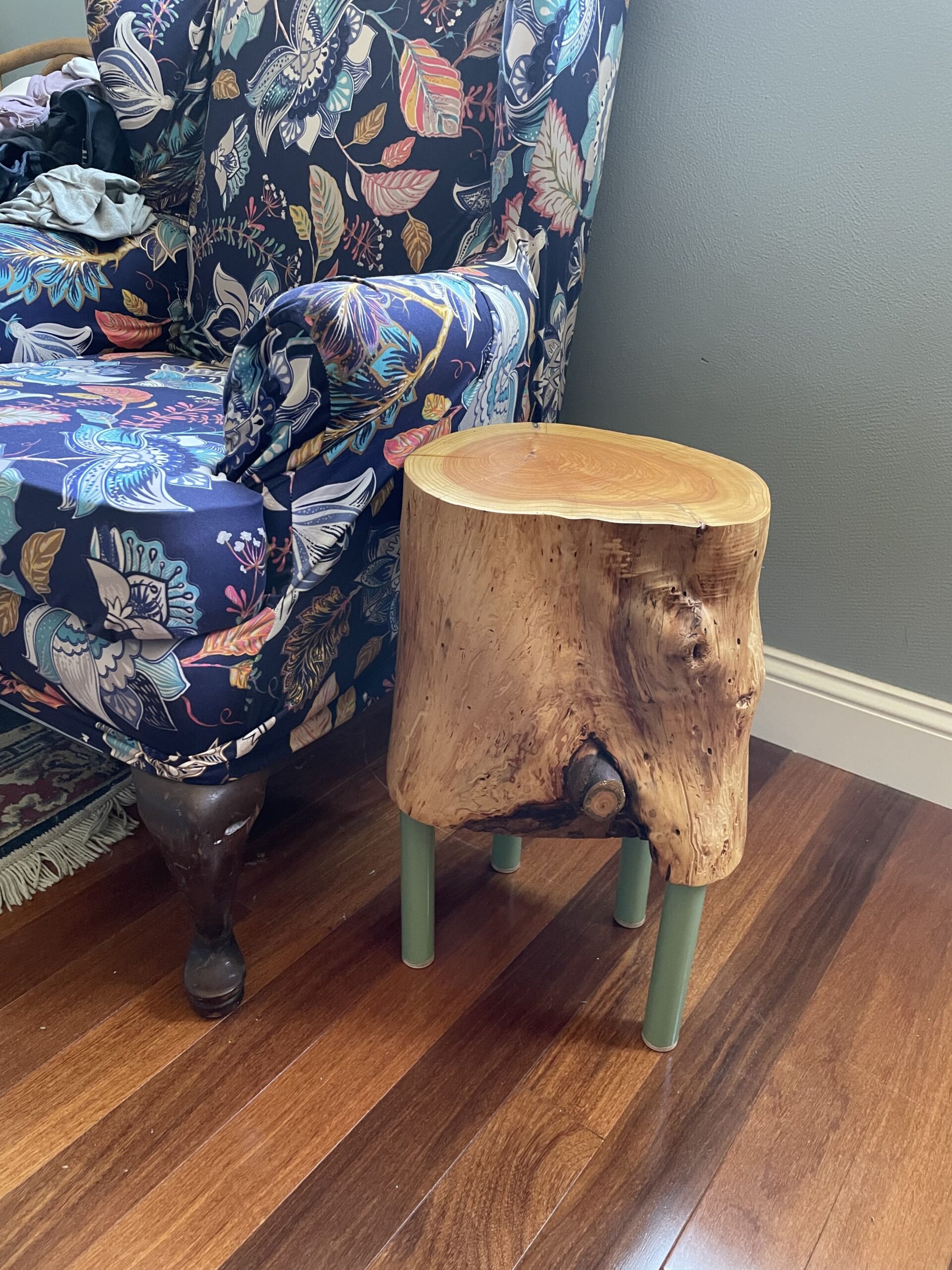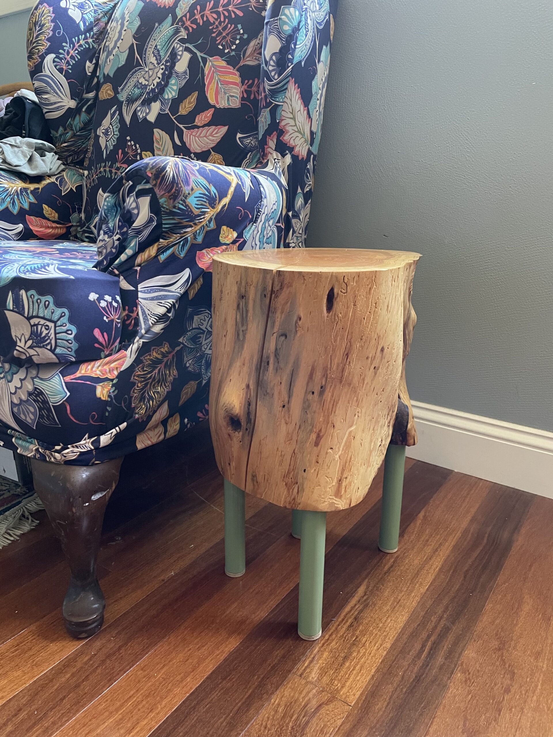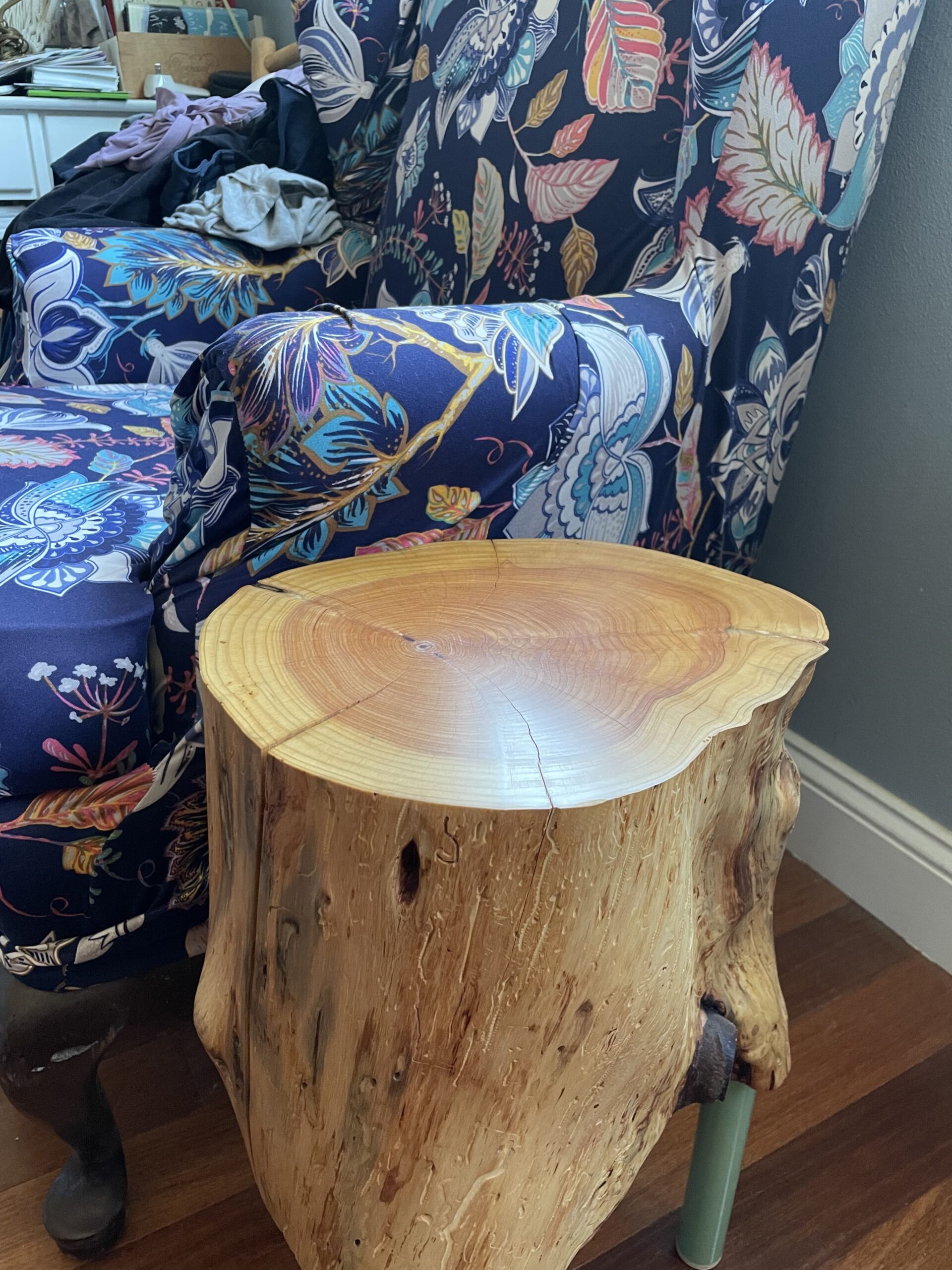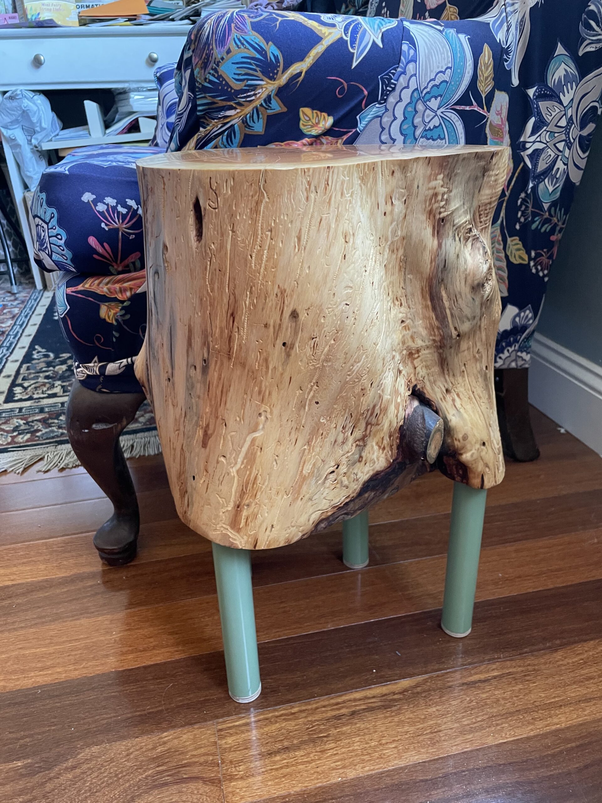 This stump has some nice details in the grain as well as some interesting patterns left by some long gone insects. It sits on four steel legs. If you’d like to purchase this table, or have any questions, please contact me by clicking below.